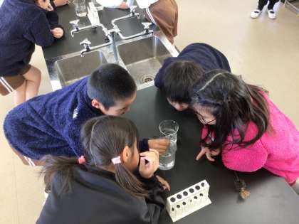 ペットボトルの実験に続き、せっけん水を使った実験をしました。