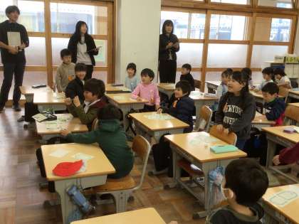自分や友だちのよいところを見つけ、「すてきだねカード」に書いて渡しました。