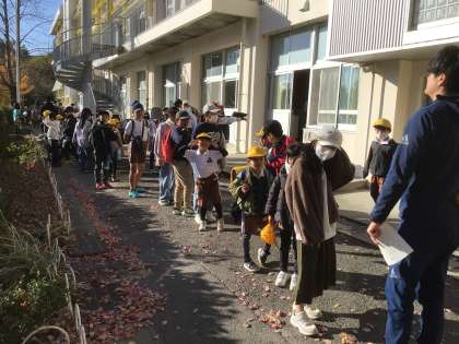 限られた敷地内での下校になりますが、子どもたちはよく指示を聞いて動くことができました。