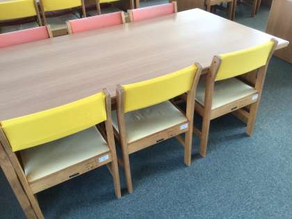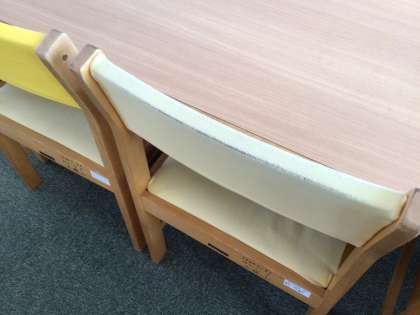 図書室の椅子の背もたれがぼろぼろになっていました。