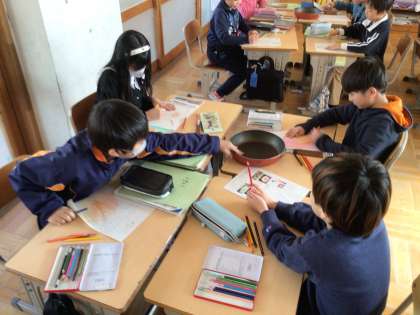 金属はどのように温まっていくか色をつけて予想をたてました。
