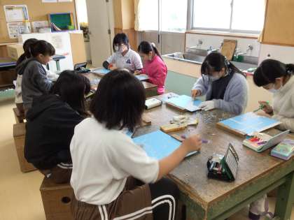 土小の校舎や木々、水車などを刻んでいて、子どもたちにとって思い出深いものであってくれたことを嬉しく思いました。