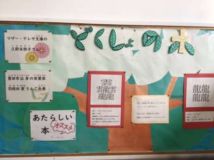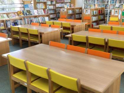 図書室の椅子カバーが全て鮮やかな黄色とオレンジにになりました!