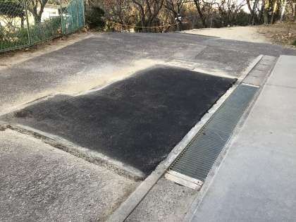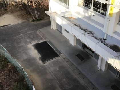 週末昇降口前の足洗い場もアスファルトで埋められました。