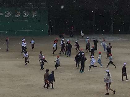ちょうど昼放課のサンタイムに雪が舞いました。