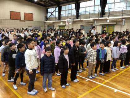 全校児童で感謝の気持ちを込めて歌を歌いました。