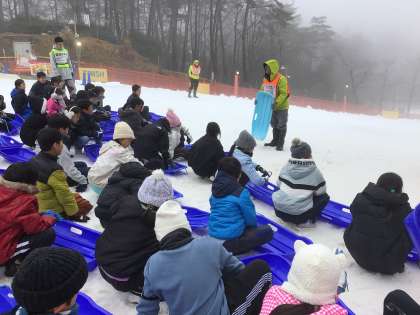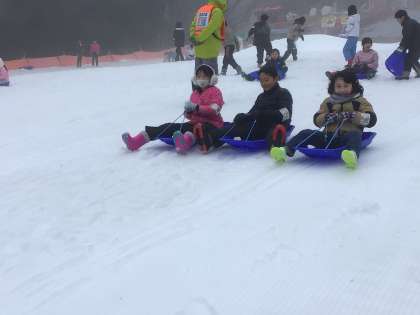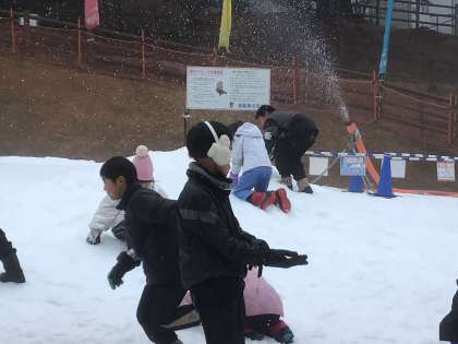 旭高原元気村でソリ遊び、雪遊びを体験しました。
