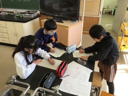 水を熱して、1分ごとに実験の記録をとりました。