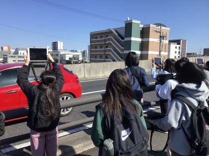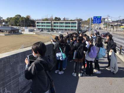 土橋地区の洪水について調べています。地形や側溝などをヒントに理由を見つけていました。