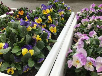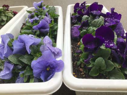 真冬に買ってきた時には葉っぱだけだったパンジーとビオラですが、春雨の中で可憐な花を咲かせ始めています。