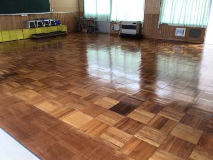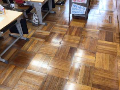 昨日のみんなでぞうきんがけした教室の床がきれいになりました。