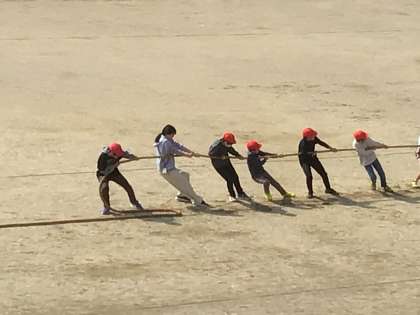 クラス対抗の綱引きで盛り上がっていました。