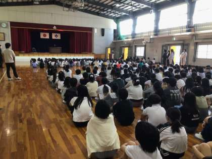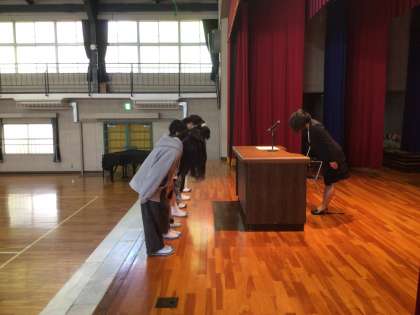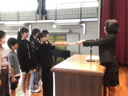 全校朝会で、委員長、学級委員の認証がありました。