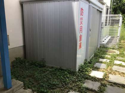 防災用倉庫の周りに雑草が生え始めているので、夏場は気をつけます!