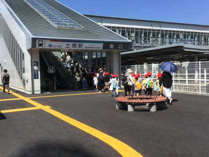 途中休憩の土橋駅で地図の場所を確認したり、通過する電車を見たりしました。