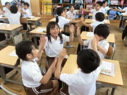 リズム打ちをしていました。 グループで仲良く手を合わせて、実に楽しそうでした。