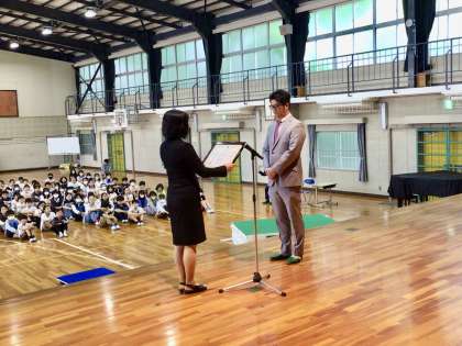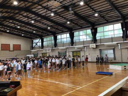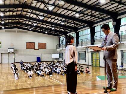 牧村工業株式会社様と愛知銀行豊田南支店のご厚意で、土橋小へ安全マット、スクリーン、ジャンピングボードを寄贈いただきました。
