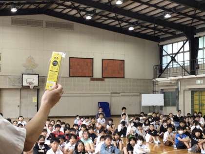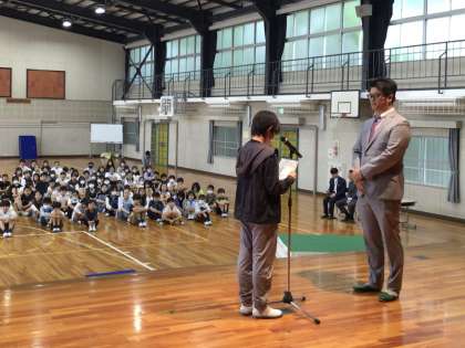 心を込めて、代表児童がお礼をお伝えしました。