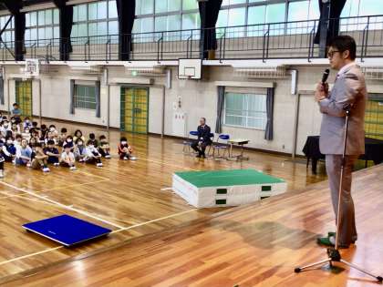 土橋小の卒業生でもある牧村代表取締役社長からあたたかいお言葉をいただきました。