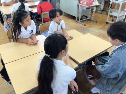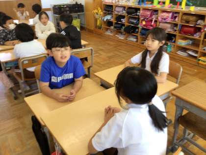 話し合いの間、お互いの顔を見て話せる子が多くなってきました。