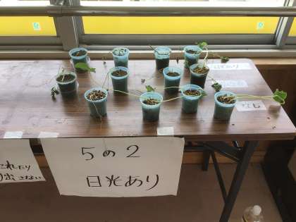 植物の成長の条件を調べています。