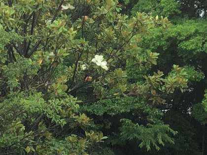 雨の中、タイサンボクの白い花が綺麗でした。