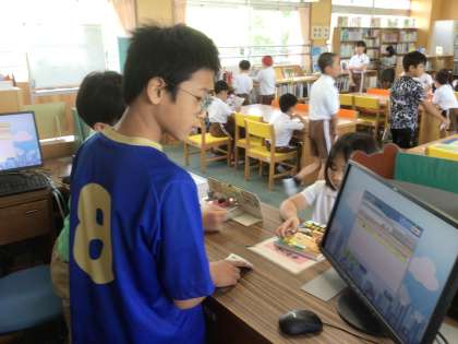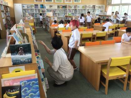 暑くて外遊びのできない日は、いつもにも増してたくさんの子が図書室に来ます。