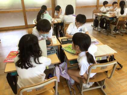 物語の山場(クライマックス)を学習したので、自分なりの物語を作ってグループ発表していました。