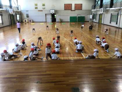 暑くて外遊びはできませんが、体育館では快適に運動することができます。