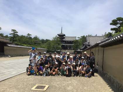 最後の見学地、世界最古の木造建築、そして、日本最初の世界文化遺産の「法隆寺」です。