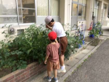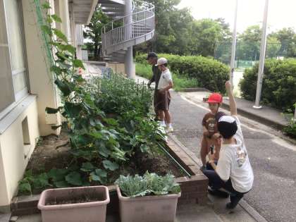 支柱を立てていました。 野菜たちがぐんぐん育っていて楽しみです。
