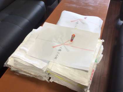 昨年度に引き続き、土橋六三会の皆様から雑巾の寄付をしていただきました。