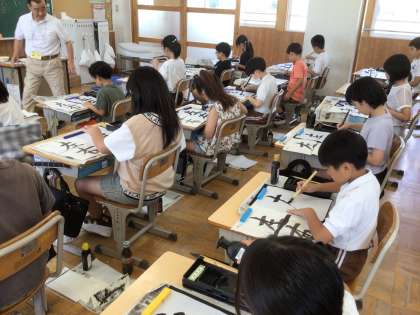 真剣です。 はらいが難しいですが、よく見て練習していました。