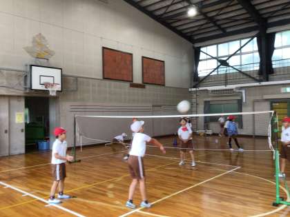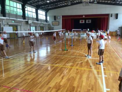 体育館は冷房のおかげで快適です。 やわらかいボールにも慣れてゲームを楽しんでいました。