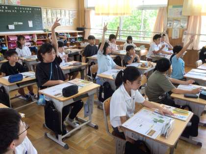 生物の活動と植物の成長を話し合っていました。 積極的に発言しています!