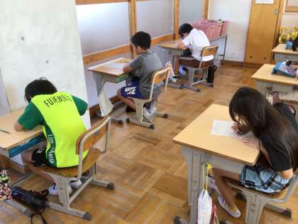 今日は漢字のテストです。 真剣に取り組んでいました。 合格できるといいですね。