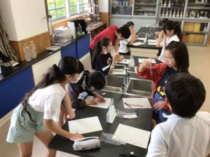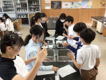 前回の授業で実験方法のアイデアを募り、今日は見た目とにおいを調べてみました。
