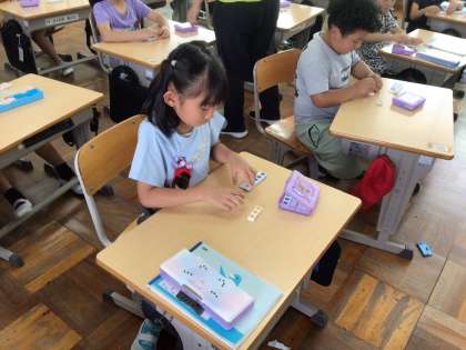 繰り上がりのあるたし算の学習です。 ブロックを10のかたまりに操作しながら考えていました。