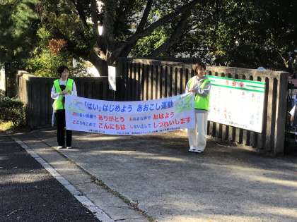 PTAの役員の皆様が朝のあいさつ運動に来てくださいました。