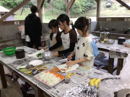 カレーの具材を切っています。 包丁の使い方が上手になりました。