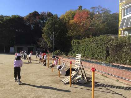 昼放課、日差しも穏やかで、子どもたちが外に出て元気に遊んでいました。