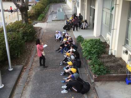 一斉下校後に各通学団で集まって、一列歩行や安全指導を行いました。