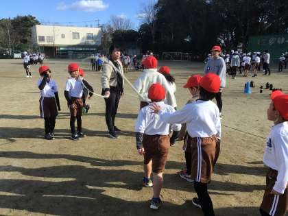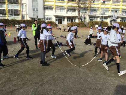 5時間目に全校児童が運動場で大縄跳びに挑戦しました。
