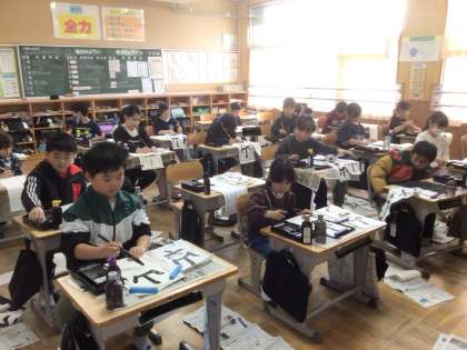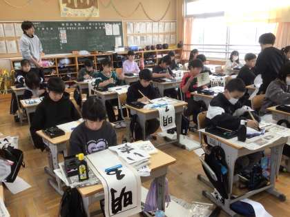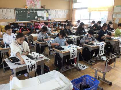 何度も手本を見ながら書いていました。