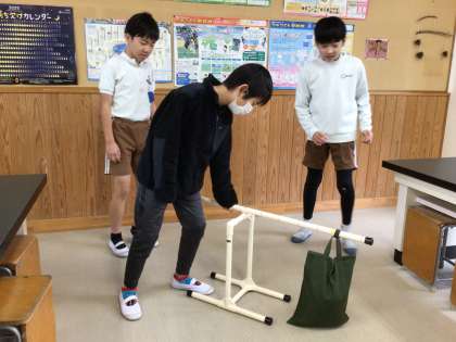 重たいものを持ち上げました。 てこを使えば簡単ですね。