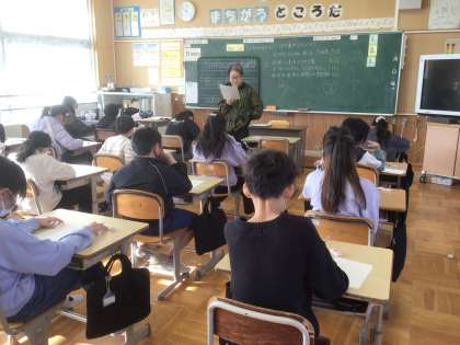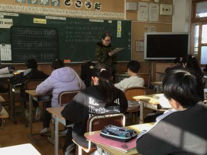 リスニングのトレーニングです。 先生の問いを聞き取って答えます。 集中していました。