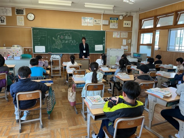 4年生のようすです。「One Team」で、あたたかく助け合う学年をめざします。