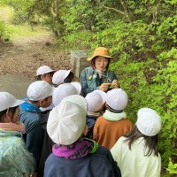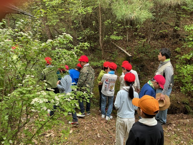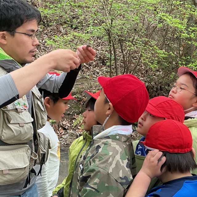 生き物のすみかを探したり、葉っぱの香りをかいだり、五感を使って活動しました。