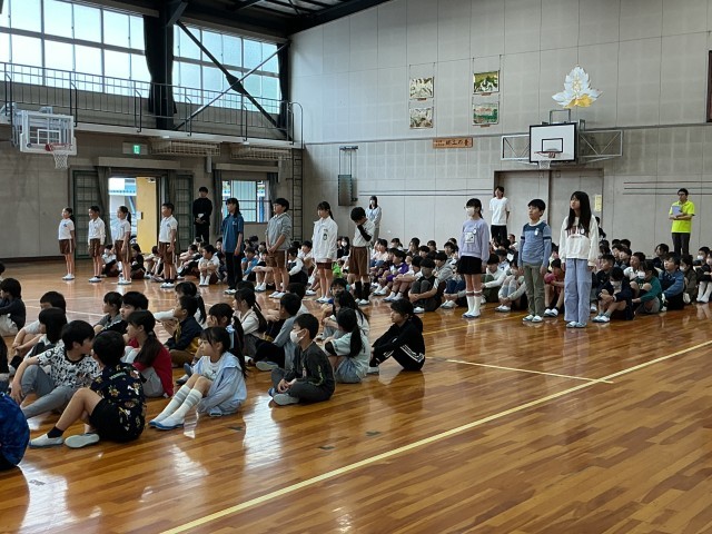 「自分で考えて行動できる土橋小にしていきたい」と代表児童が全校に呼びかけました。