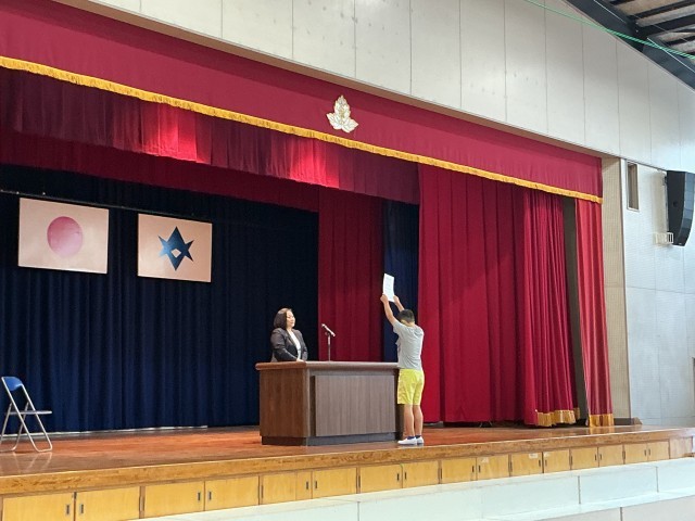 全校で認証式を行いました。各委員会の委員長、学級の代表の認証状を校長先生から受け取りました。